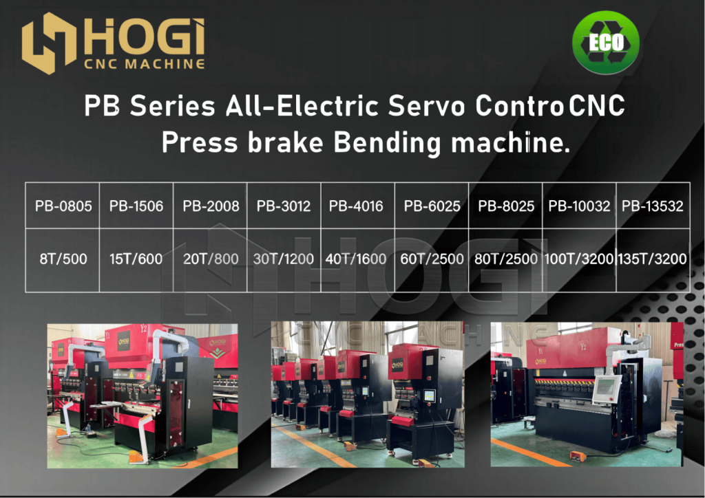 Combining these three major advantages, all-electric servo press brakes deliver significant benefits to sheet metal manufacturers, including shorter processing cycles, enhanced machining precision, and reduced skill requirements for equipment operators. However, all-electric servo press brakes also have limitations. Their high-power servo motors result in relatively high production costs for the entire machine, particularly for large press brakes. Consequently, specifications for all-electric servo press brakes offered by foreign companies are often limited to lengths under 2 meters. As a leading domestic designer, manufacturer, and seller of all-electric servo press brakes, HoGi CNC has launched models reaching up to 135 tons with a 3.2-meter bed length. For higher tonnage requirements, HoGi CNC offers the HE series press brakes, which integrate hydraulic-electric hybrid pump control technology. With ongoing technological advancements and the increasing adoption of all-electric servo press brakes, this technology is poised to further drive the sustained development of China’s sheet metal manufacturing industry.